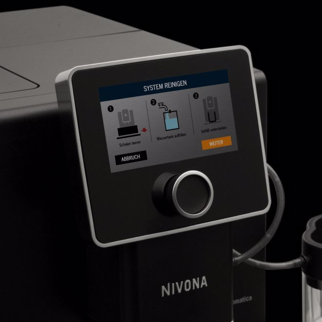Komfortní ovládání kávovaru zvyšuje nový a obzvláště velký dotykový 5" displej, díky kterému jasně a jednoduše vyberete Vámi přednastavený nápoj nebo spustíte hygienické programy pro údržbu.